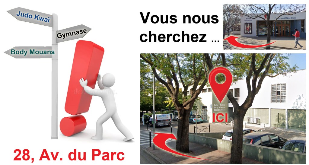 L’entrée de la salle de sport se fait par l’arrière du centre sportif René Friard, en descendant l’avenue du Parc. L’entrée est commune avec le dojo du Judo Kwaï.