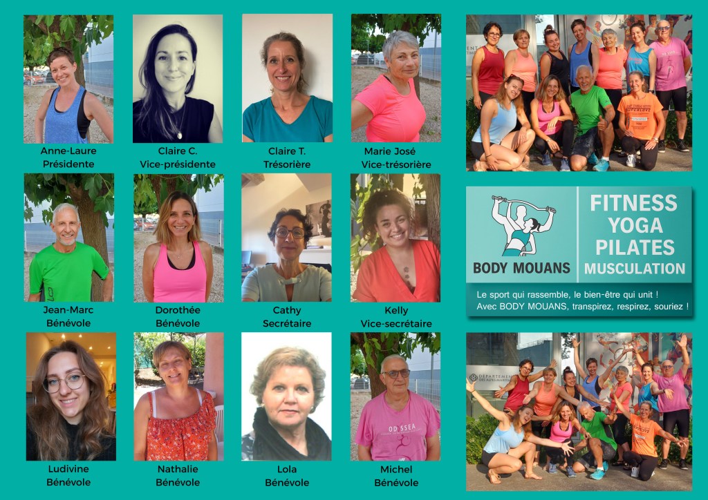 À Mouans-Sartoux, Body Mouans, c’est une association 100 % gérée par des bénévoles passionnés au service des adhérents. Une équipe investie, conviviale et motivée, qui vous embarque dans une dynamique collective où le corps se dépense, se renforce, s’étire et s’apaise, toujours dans la bonne humeur !