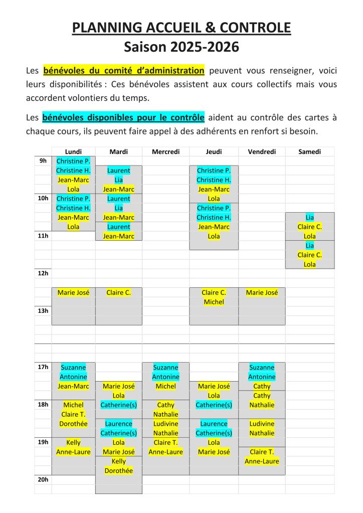 Pour un renseignement, un cours d’essai, un abonnement … les bénévoles sont présents à l’accueil ou dans la salle de sport, n’hésitez pas à sonner et vous montrer par la porte de la salle pour attirer leur attention.