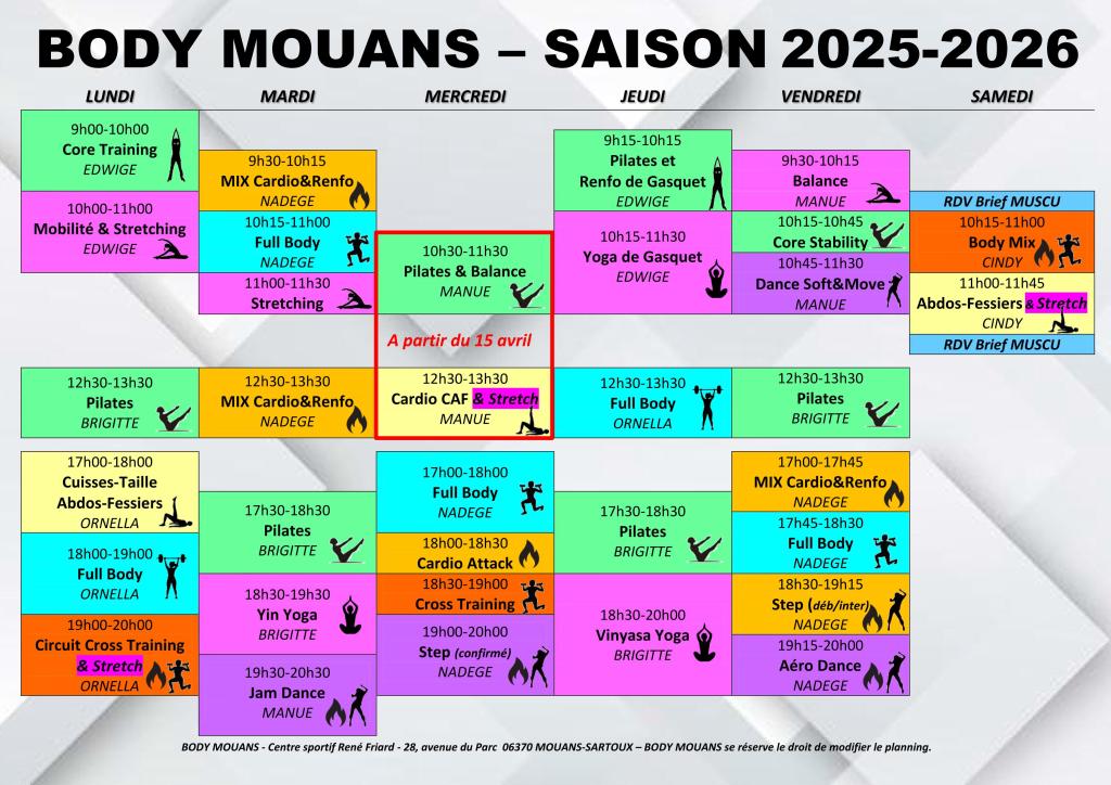 Un nouveau planning de cours collectifs enrichi…